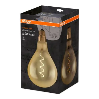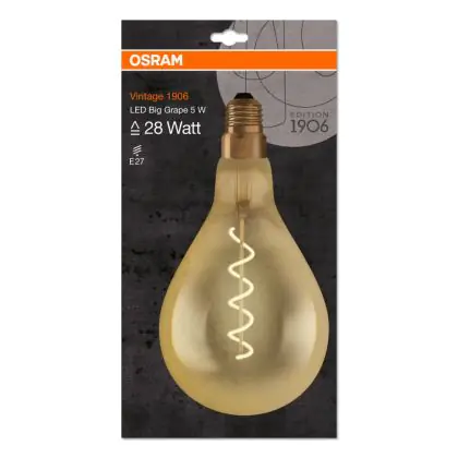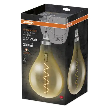 La Osram Vintage 1906 LED E27 Pera Filamento Oro 5W 300lm - 820 Bianco Molto Caldo | Sostitutiva 40W è la perfetta sostituzione per la tua lampada convenzionale 28W con attacco E27 grazie alla sua tecnologia LED. Passare a LED ti offrirà tanti vantaggi!