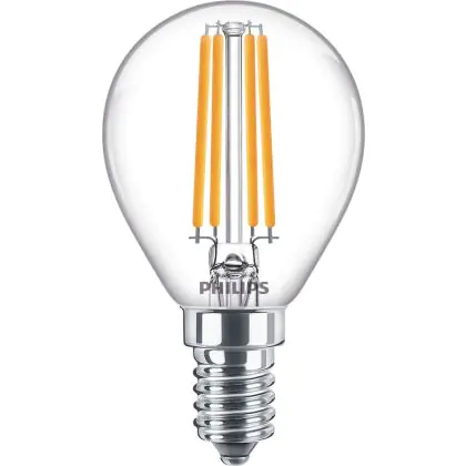 La lampada Philips Corepro LED Lustre E14 Sferica Filamento Chiara 6.5W 806lm - 827 Bianco Molto Caldo | Sostitutiva 60W è il sostituto perfetto per le tue vecchie lampade 60W con attacco a vite piccolo E14 grazie alla sua tecnologia LED. Passare a LED ti offrirà molti vantaggi!