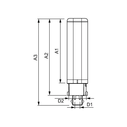 Questa lampada PL-C con attacco a quattro pin è ideale per un’installazione negli apparecchi luminosi che richiedono un attacco G24d-2. Si consiglia di controllare le dimensioni delle vecchie lampade a basso consumo PL-C, in quanto le misure delle alternative LED possono differire di alcuni millimetri.