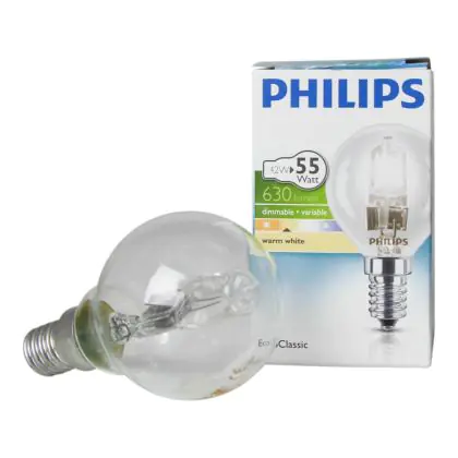 La Philips EcoClassic Lustre Clear 42W 230V P45 CL é una lampadina alogena di facile installazione e sostituzione, grazie alla sua base a vite E14. Questo modello é perfetto per illuminare oggetti sensibili, grazie alla presenza di un filtro UV che evita lo scolorirsi dei prodotti illuminati, e per applicazioni all'interno di negozi grazie alla resa dei colori di 100Ra. La colorazione della luce di 2800K garantisce un'atmosfera rilassata nell'ambiente. La durata media della Philips EcoClassic Lustre Clear 42W 230V P45 CL ha una durata media di 2.000 ore.