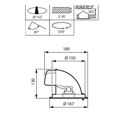 Spazio richiesto (mm) | 150 | |