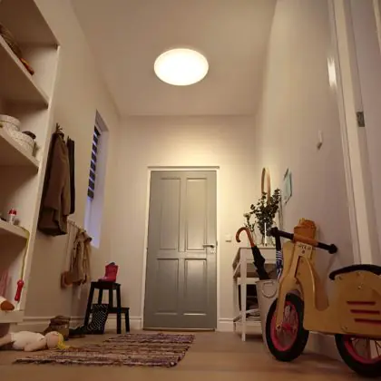Con gli apparecchi dimmerabili si può rregolare l'intensità luminosa. Quando si abbassa la potenza della luce si consuma meno energia elettrica e si risparmia quindi sui costi energetici. Le lampade dimmerabili possono anche essere usate per creare un'atmosfera molto accogliente. Tieni presente che hai bisogno di un dimmer LED per regolare apparecchi LED.