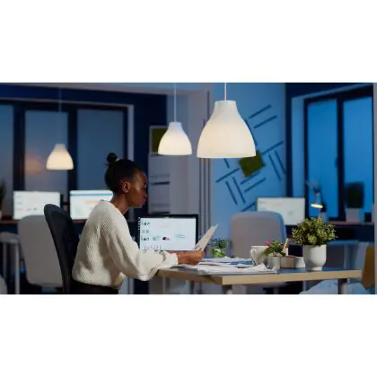 Con gli apparecchi dimmerabili si può rregolare l'intensità luminosa. Quando si abbassa la potenza della luce si consuma meno energia elettrica e si risparmia quindi sui costi energetici. Le lampade dimmerabili possono anche essere usate per creare un'atmosfera molto accogliente. Tieni presente che hai bisogno di un dimmer LED per regolare apparecchi LED.
