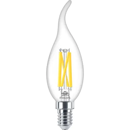Descrizione Philips MASTER LED E14 Piegato-tip Candela Filamento Chiara 3.4W 470lm - 922-927 Dim To Warm | Miglior Resa Cromatica - Dimmerabile - Sostitutiva 40W