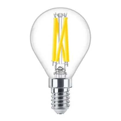 La lampada Philips MASTER LED E14 Sferica Filamento Chiara 3.4W 470lm - 922-927 Dim To Warm | Miglior Resa Cromatica - Dimmerabile - Sostitutiva 40W è il sostituto perfetto per le tue vecchie lampade 40W con attacco a vite piccolo E14 grazie alla sua tecnologia LED. Passare a LED ti offrirà molti vantaggi!