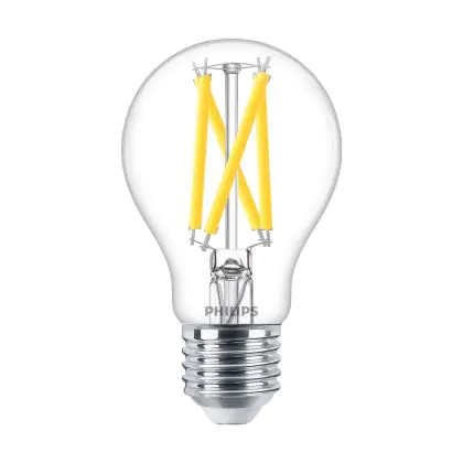 La Philips Master LED E27 Pera Filamento Chiara 7.2W 1055lm - 922-927 Dim To Warm | Miglior Resa Cromatica - Dimmerabile - Sostitutiva 75W è la perfetta sostituzione per la tua lampada convenzionale 75W con attacco E27 grazie alla sua tecnologia LED. Passare a LED ti offrirà tanti vantaggi!