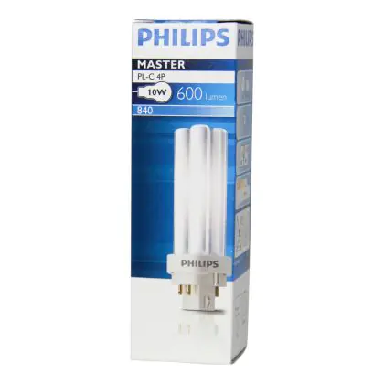 Philips PL-C 10W 840 4P è una lampada fluorescente compatta a basso contenuto di mercurio efficiente con attacco a 4 pin G24q-1. Questa lampada firmata Philips assicura prestazioni luminose fino a 10.000 ore che equivalgono a 3 anni con un utilizzo giornaliero di 8 ore.