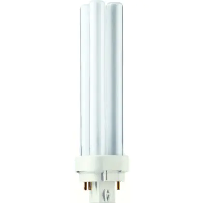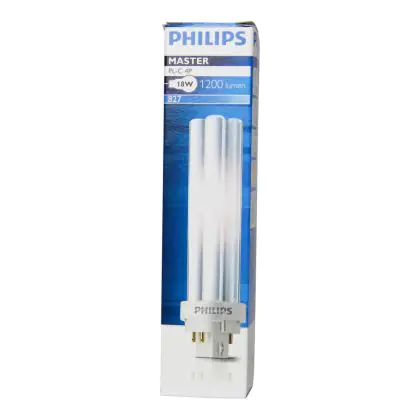 Philips PL-C 18 W 827 4P è una lampada fluorescente compatta a basso contenuto di mercurio efficiente con attacco a 4 pin G24q-2. Questa lampada firmata Philips assicura prestazioni luminose fino a 10.000 ore che equivalgono a 3 anni con un utilizzo giornaliero di 8 ore.
