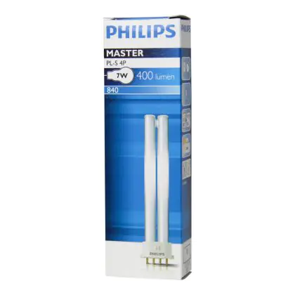 Le Philips PL-S 7W 840 4P (MASTER) sono lampade fluorescenti compatte veramente efficienti dal punto di vista energetico in quanto consumano poca energia e sono caratterizzate da una vita media incredibilmente lunga. La base di queste lampade fluorescenti a basso consumo é del tipo 2G7 a 4 pin (perni). La potenza delle medesime é pari a 7W. Quando decidi di sostituire le tue vecchie lampade fluorescenti compatte, é di estrema importanza mantenere medesima base, numero di pin (perni) e stessa potenza: se anche uno solo di questi parametri é differente dalle tue lampade originali, con tutta probabilità non riuscirai a procedere con l'installazione.
