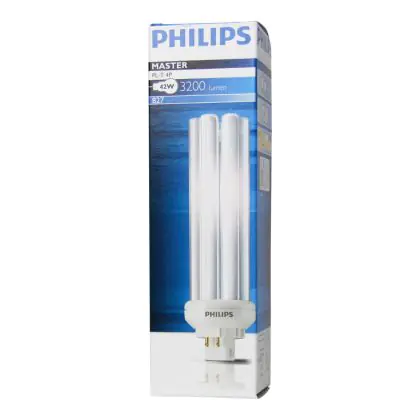 Le Philips PL-T 42W 840 4P (MASTER) sono lampade fluorescenti compatte veramente efficienti dal punto di vista energetico in quanto consumano poca energia e sono caratterizzate da una vita media incredibilmente lunga. La base di queste lampade fluorescenti a basso consumo é del tipo GX24q-4 a 4 pin (perni). La potenza delle medesime é pari a 42W. Quando decidi di sostituire le tue vecchie lampade fluorescenti compatte, é di estrema importanza mantenere medesima base, numero di pin (perni) e stessa potenza: se anche uno solo di questi parametri é differente dalle tue lampade originali, con tutta probabilità non riuscirai a procedere con l'installazione.