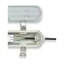 Questo apparecchio può essere usato sia in spazi interni che in spazi esterni, poiché ha indice di protezione contro l'ingresso di acqua e polvere IP65. In generale, un apparecchio con IP44 è resistente a schizzi di acqua e umidità, e può quindi essere installato in spazi esterni molto umidi o esterni riparati, come sono una tettoia. Un apparecchio che invece verrà esposto a intensi getti di acqua deve avere almeno IP54. Questa lampada ha anche un indice di resistenza a urti e impatti di IK08 - 5 Joule.