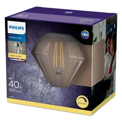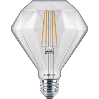 La Philips Vintage Classic LED Globe E27 Diamond Filamento Chiara 95mm 5W 500lm - 827 Bianco Molto Caldo | Dimmerabile - Sostitutiva 40W è la perfetta sostituzione per la tua lampada convenzionale 40W con attacco E27 grazie alla sua tecnologia LED. Passare a LED ti offrirà tanti vantaggi!