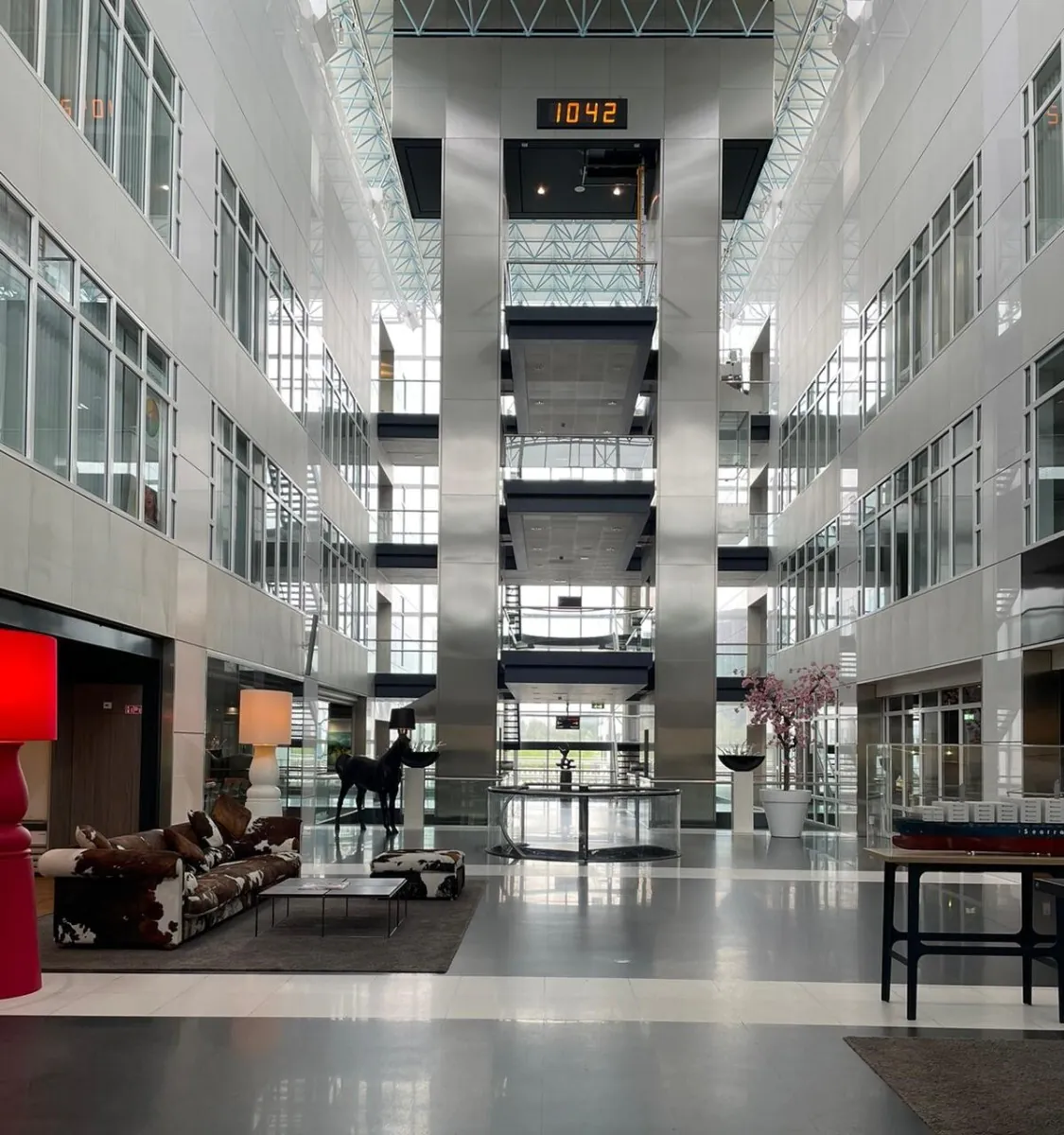 In tutto l'edificio sono stati utilizzati diversi apparecchi di Lumiparts e Noxion. È stato scelto di usare negli spazi di lavoro dei pannelli LED abbinati a vari apparecchi di design nelle aree di relax, per creare la giusta atmosfera in ogni ambiente. In fondo alla pagina c'è una panoramica con alcuni degli apparecchi utilizzati.