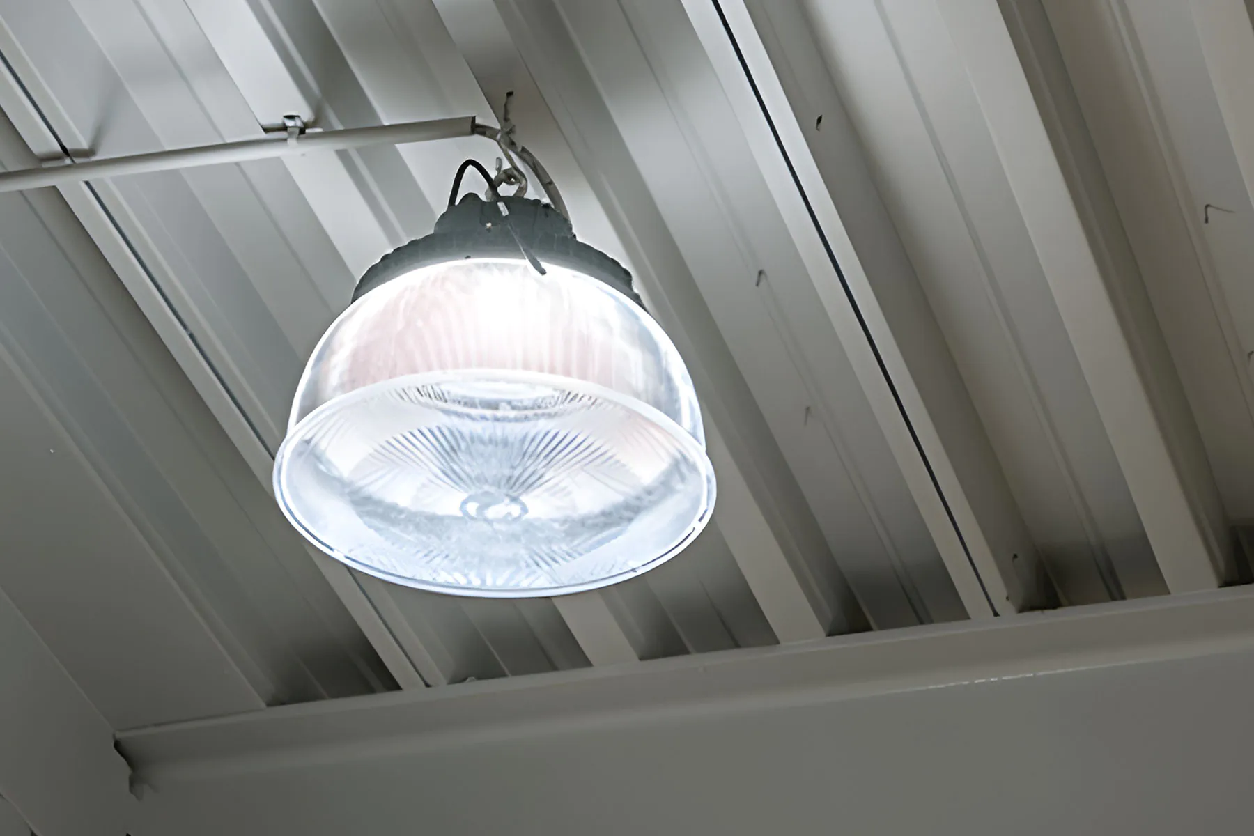 Le lampade industriali highbay LED con riflettori appositi garantiscono una buona distribuzione della luce sui prodotti ed evitano che le persone vengano accecate dalla luce. Inoltre questi apparecchi consumano 200W, a differenza dei 400W consumati dalle vecchie fonti di luce convenzionali.