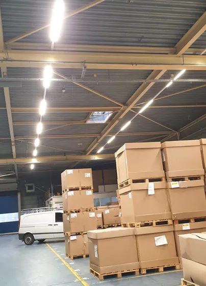 Un magazzino è in continuo movimento. A causa del continuo cambiamento delle scorte il modello di illuminazione del magazzino non era più funzionale. L'illuminazione non era ben distribuita e in alcuni punti mancava la luce. Inoltre, l'illuminazione era costituita da sorgenti luminose convenzionali.
