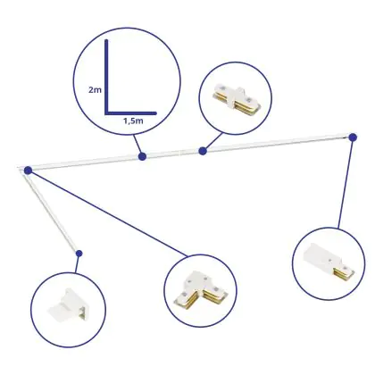 Nome del fabbricante | Complete L shaped 1-Phase Track Set White – 1,5 x 2 meter incl. End Cap, Power Connector and L -Con | |
