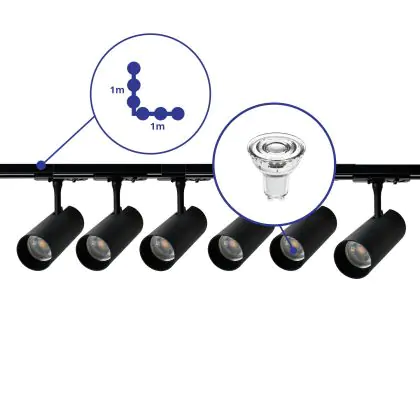 La tecnologia LED offre innumerevoli vantaggi; primo fra tutti il notevole risparmio energetico. Questi faretti a binario LED, infatti, consumano solo watt pur avendo una potenza luminosa di lm. Inoltre i LED non emettono sfarfallii e hanno un lungo ciclo di vita, che in questo caso è di ore, cosa che riduce i costi di manutenzione e sostituzione.
