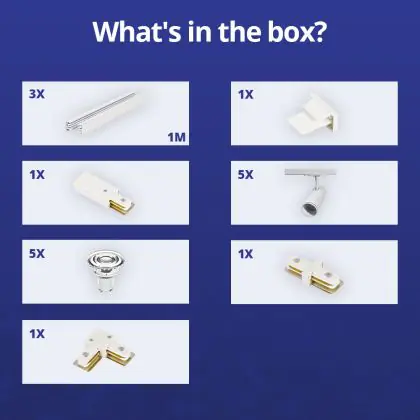 Nome del fabbricante | Complete L shaped 1-Phase Track Set White incl. 5x Spot fixture + GU10 2700K 3W Dim – 1 x 2 meter i | |