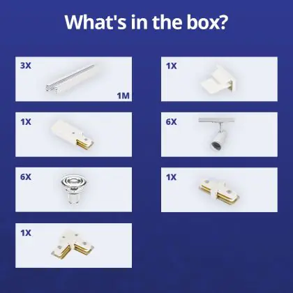Nome del fabbricante | Complete L shaped 1-Phase Track Set White incl. 6x Spot fixture + GU10 2700K 3W Dim – 1 x 2 meter i | |