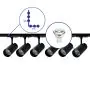 Descrizione Set completo 1-Fase Rail L 1 x 2 Metro Nero | incl. 6x Faretti + GU10 2700K 3W Dimmerabile + Tappo Di Chiusura, Connettore di Alimentazione e L -Connettore
