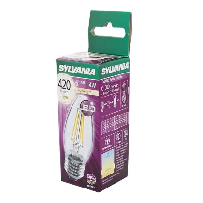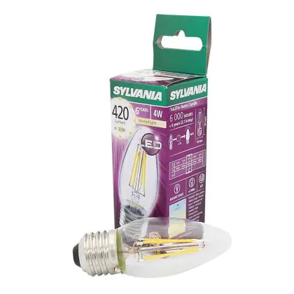 Descrizione Sylvania ToLEDo E27 Candela Filamento Chiara 4W 420lm - 827 Bianco Molto Caldo | Sostitutiva 40W
