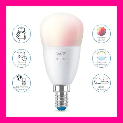 Nome del fabbricante | WiZ Kogellamp - Slimme LED-Verlichting - Gekleurd en Wit Licht - E14 - 40W - Mat - Wi-Fi | |