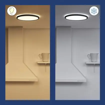 Per scegliere un apparecchio di illuminazione bisogna anche considerare dove verrà installato. Per esempio la luce di 2700 Kelvin (bianco molto caldo) e 3000 Kelvin (bianco caldo) creano un’atmosfera rilassante e piacevole. Questa tonalità è quindi molto adatta ad ambienti accoglienti o a zone generiche come corridoi, ascensori, disimpegni o pianerottoli. Una luce di 4000 Kelvin (bianco freddo), invece,è più luminosa e fresca ed è quindi adatta come illuminazione funzionale in uffici, aziende, scuole e biblioteche. La temperatura di colore di questa plafoniera LED è 2700K - 6500K bianco regolabile.